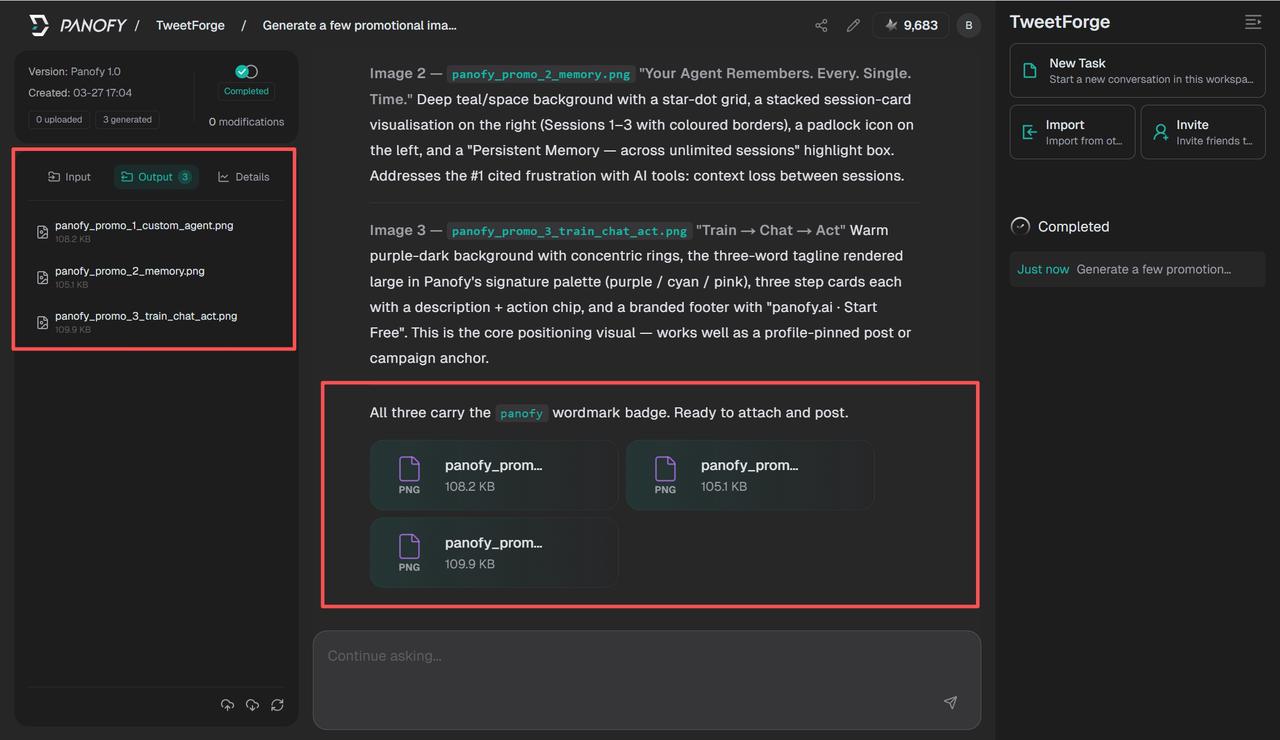 Most AI tools start from scratch every session. Every interaction requires you to re-establish context, re-explain your needs, and re-specify your output format. Panofy works differently — once those definitions are in place, the agent works to those standards consistently, learning from each interaction to understand you better.