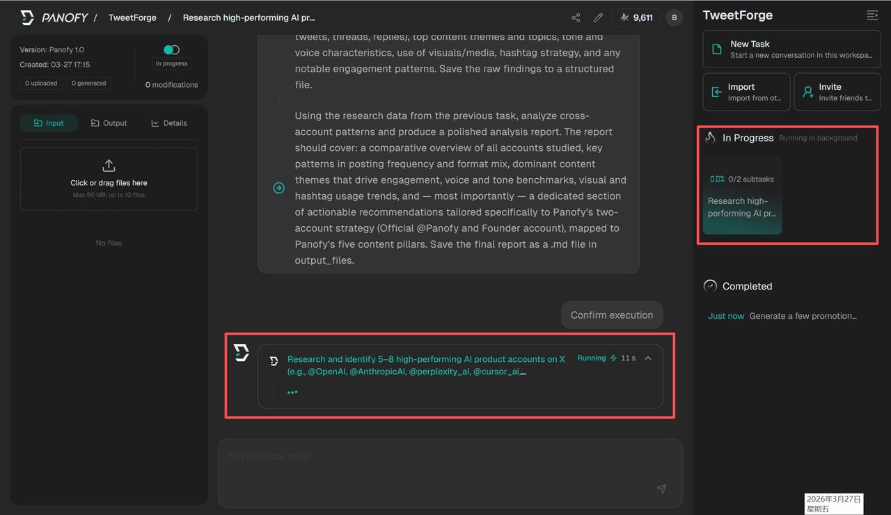 Once execution is confirmed, you can monitor the progress of each sub-task in real time.